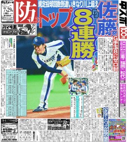 「いつも通り。(ランナーが)出たら送って何でもいい、内野ゴロでもいいから還してくれれば。ずっとこういう展開。大ざっぱな野球はやらない。野球はあくまでも点取りゲーム。(打線は?)底から1センチぐらい浮上したかな。一番悪い時期に比べたら上がっているのは確かだ。これからは、どこというのじゃなく(3連勝は)大きい。セ・リーグにはそういう(勝率の)システムがある以上、先、先を行かないとな。(川上は)中田、マサ(山本昌)が勝って、エースとして負けるわけにはいかないというものがあったんじゃないか。あれがエースのプライドというものじゃないかな。」